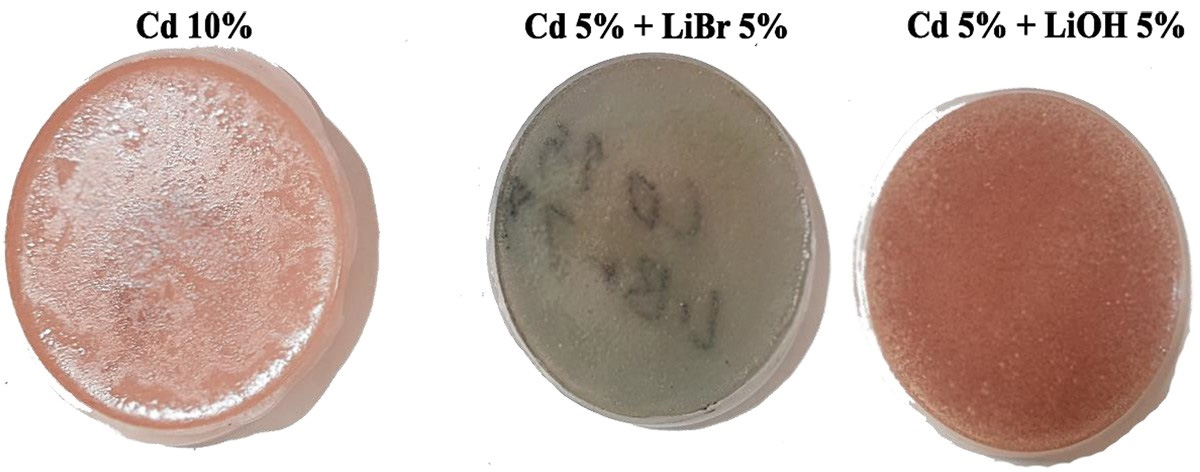 | Sample | Polyester | Cadmium 10 | Cd2.5_LiOH7.5 | Cd2.5_LiBr7.5 |
