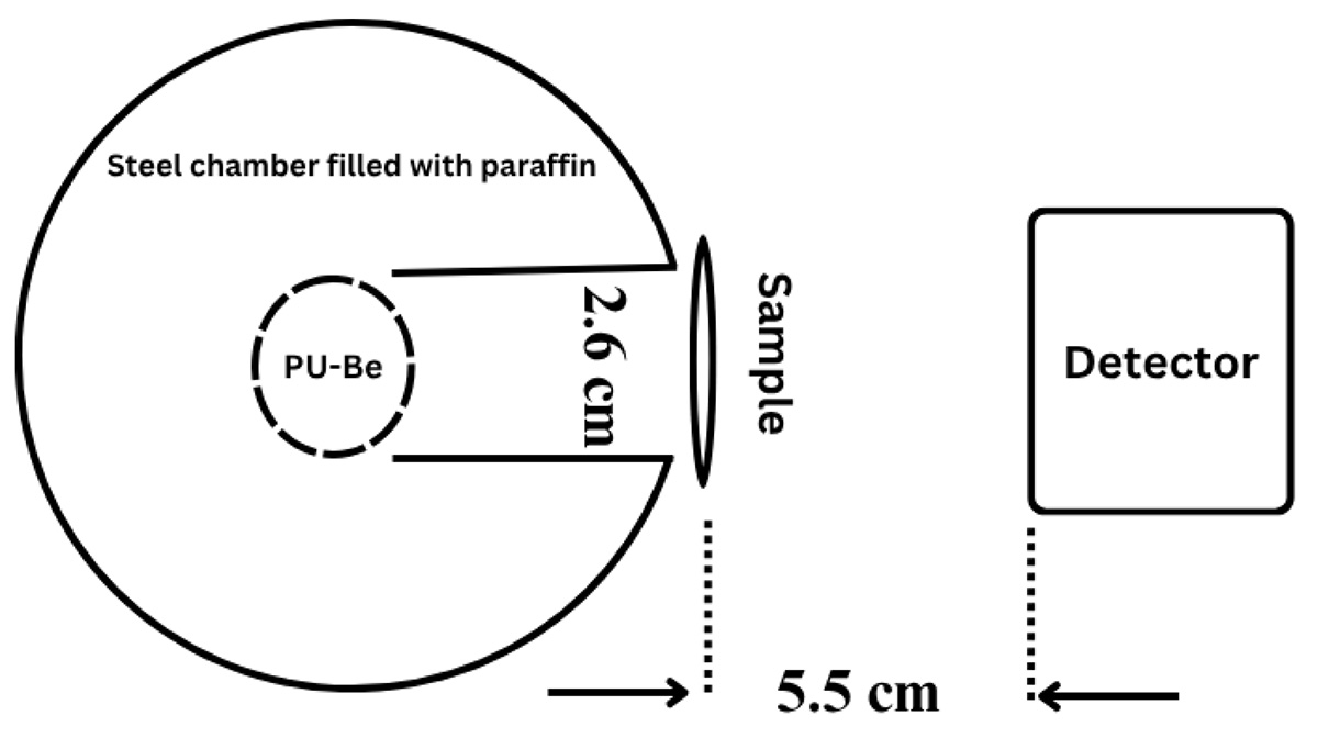 Complementary Monte Carlo simulations were carried out in Geant4 v11.1.0 [ 27 ] using the Quark–Gluon String Precompound Binary Cascade High Precision (QGSP_BIC_HP) physics, list, which incorporates high‐precision neutron scattering (G4HadronPhysicsQGSP_BIC_HP), hadronic and electromagnetic processes, and radioactive decay models [ 21 , 28 ]. The simulated geometry precisely replicated the experimental arrangement, including the paraffin‐moderated source container, sample holder, and detector volumes. Neutron emissions from the 239Pu–Be source were modeled isotropically up to the maximum energy of 11 MeV (mean energy ≈4.1 MeV, and energy filters were applied to distinguish thermal from fast neutrons in the scoring volumes. Each simulation tracked 2×109 primary neutrons, achieving statistical uncertainties below 0.5%. Transmission ratios from the simulation (I_sim/I₀_sim) were directly compared with experimental T values to validate the computational model and assess its predictive accuracy for each composite formulation [ 29 - 32 ].